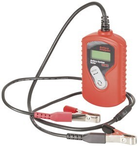 This battery tester quickly, easily, and accurately measures the actual cold cranking amps capability of the vehicle starting battery. It tests most automotive cranking lead acid batteries, including an ordinary lead acid battery, AGM flat plate battery, AGM spiral battery, and GEL battery, etc. It can identify a battery with bad cells, has reverse polarity protection, and meets major battery testing standards such as CCA, BCI, CA, MCA, JIS, DIN, IEC, EN, SAE, and GB. The handy device features an LCD display to indicate the results, a menu tab and clips to connect the battery tester to the vehicle's battery.