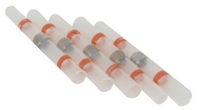 Solder splice heatshrink tubes allow you to quickly join two cables thanks to the small section of solder in the middle of the tube. Simply slide a tube over the join in two cables and heat as you would any other shrink tube. As the tube shrinks the solder melts to electrically connect the wires resulting in a join which is reliable and well insulated.