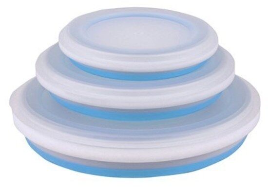 A handy set of bowls with covers that fold down fl at to save space in your kitchen cupboards where space is a premium. Made from food grade silicon.