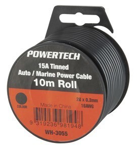 Flexible DC power cable suitable for general purpose automotive and marine applications. Tinned copper cable suitable for use in marine applications. Supplied on an easy to use 10m handy pack reel and available in three colours.