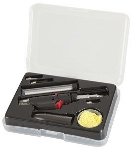 A handy gas soldering iron with flame or flameless heat blower function. Great for general heating, drying, melting, cutting, soldering, heat shrinking etc. It also features adjustment for temperature control, Piezo ignition, retractable stand, visible gas tank and child resistant latch. The tip has a sturdy cap for when not in use. Carry case includes 1mm tip, 3mm chisel tip, 5mm angle tip, hot knife tip, 1mm solder hobby pack, cleaning sponge and tray.