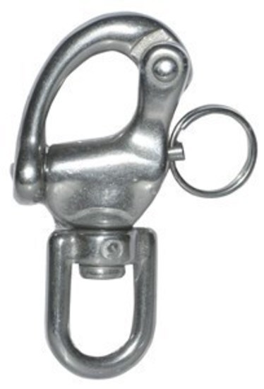 These are ruggedly made cast 316 stainless steel units with a fixed eye or a swivel eye. The shackle will not shake open under load, however they are not meant for lifting applications.